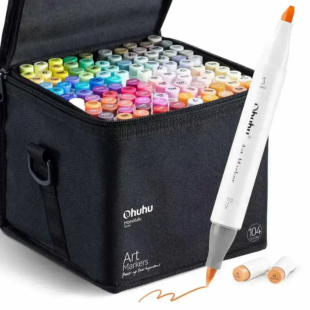 Ohuhu 104 Marcadores De Alcohol + 1 Blender. Pincel&biselada