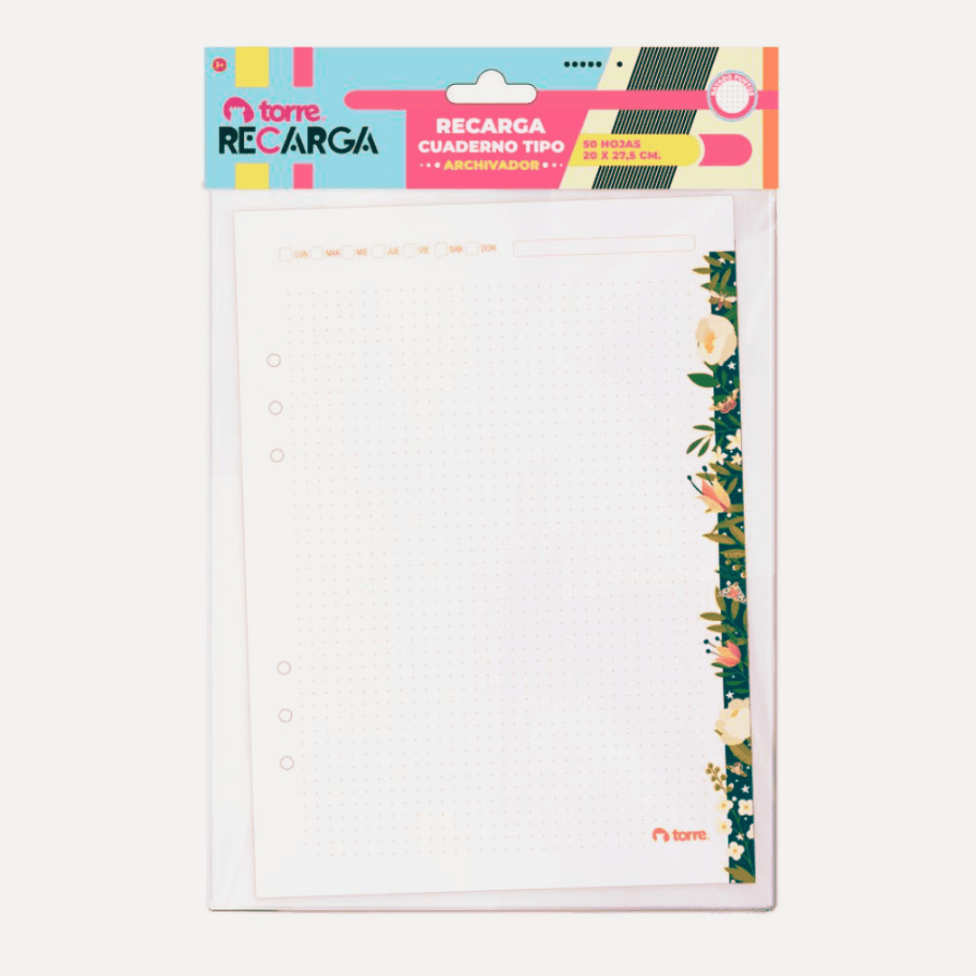 | Repuestos | Repuesto Rayado, Repuesto Cuadriculado, Repuesto Punteado, Repuesto Hojas de colores, Repuesto Organizador |